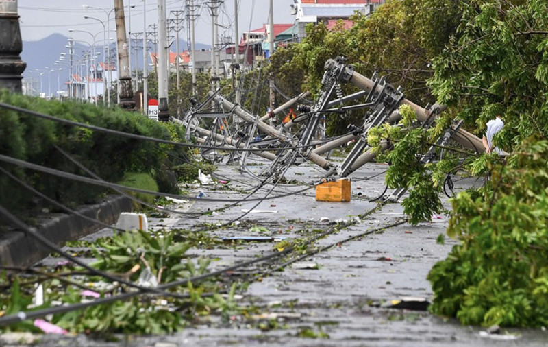 Bão số 3 quật đổ loạt cột điện ở Quảng Ninh.