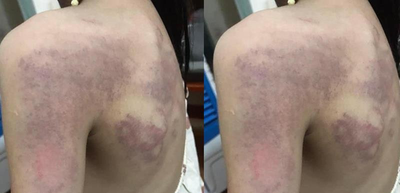 Trước đó, chiều 10/5, chị P. (28 tuổi, xã Diễn Yên, huyện Diễn Châu) đưa Ph. (lớp 3, Trường Tiểu học Diễn Yên 1) đi tắm thì phát hiện trên lưng và vai con nhiều vết bầm tím. Chị bức xúc yêu cầu cô giáo Tr.M giải thích.