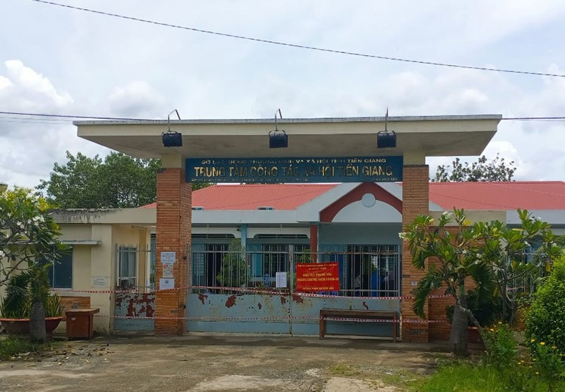 Trung tâm Công tác xã hội Tiền Giang đã được phong tỏa để dập dịch. (Ảnh: C.T)