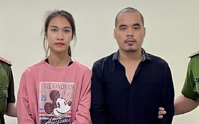 Bị can Lê Văn Cường và vợ là Bùi Thị Khánh Linh. (Ảnh: Công an cung cấp)
