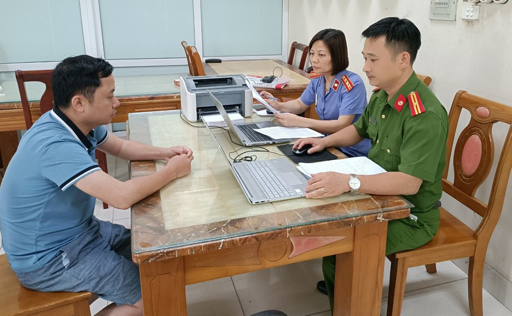 Đào Quang Hiệp tại cơ quan Công an.