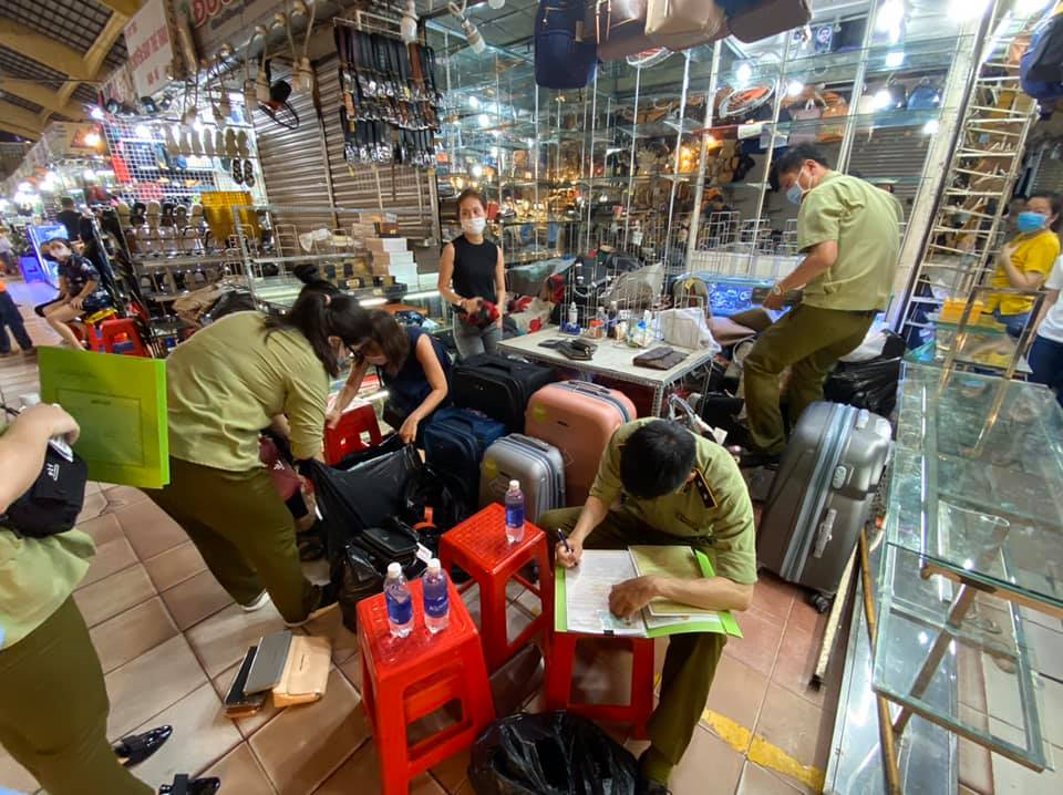 Tại chợ Bến Thành, lực lượng quản lý thị trường kiểm tra 10 kiot, tạm giữ 1.276 đơn vị sản phẩm. Trong đó, 642 đồng hồ đeo tay, mắt kính, viết các loại, mang nhãn hiệu Rolex, Longines, Gucci, Montblanc, Chanel, Rayban, Burberry, Dior, Cartier, Omega; 634 túi xách, túi đeo, thắt lưng, ví (bóp) các loại hiệu Montblanc, Prada, Gucci, Yves Saint Laurent, MCM, Dior, Hermes, Goyard, Chanel.