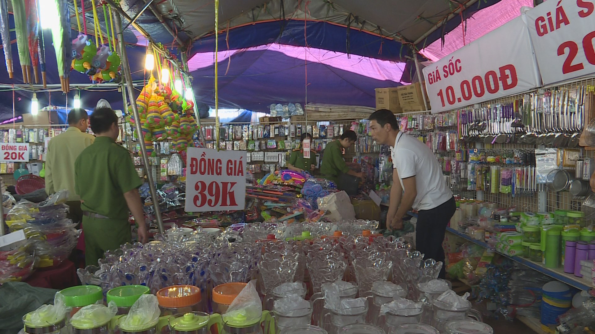 Tại đây, tổ công tác phát hiện có 7 mặt hàng với hàng trăm sản phẩm như: Bình giữ nhiệt, thiết bị điện dân dụng các loại, cặp lồng nhựa, khay đĩa hộp đựng thực phẩm, nước xả vải, hộp đựng tiền và đồ chơi trẻ em.