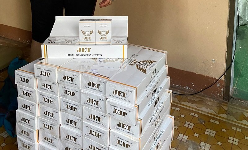 Thuốc lá lậu mang nhãn hiệu JET được cơ quan chức năng phát hiện trong các phòng trọ. (Ảnh: H.N)