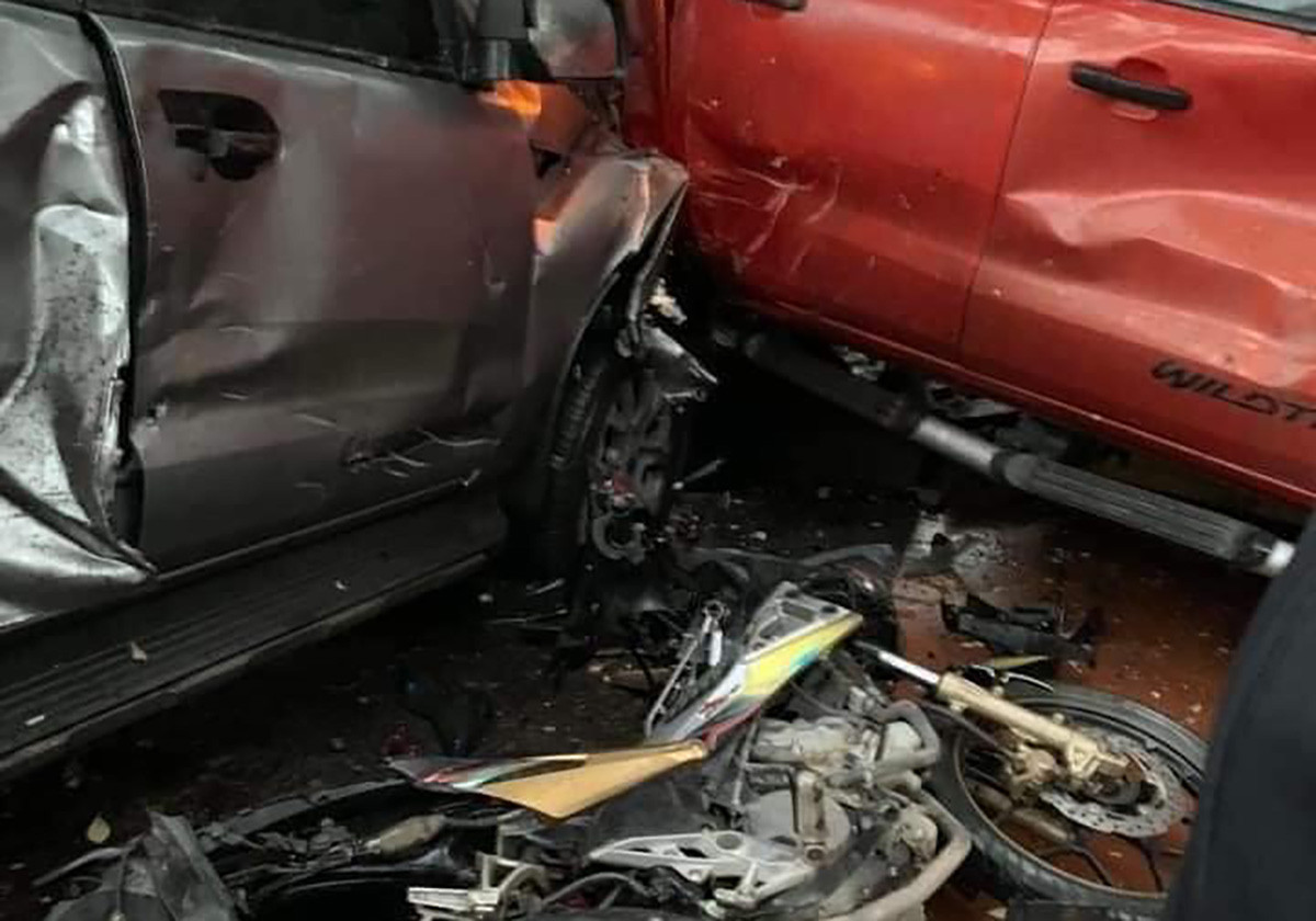 Khi đến địa điểm trên, xe bán tải đâm vào 2 xe máy BKS 11L1-14.633 và 14U1-14.642 (chưa xác định số người trên các xe) làm tử vong tại chỗ 3 người. Sau đó, xe bán tải này tiếp tục lao lên vỉa hè, đâm vào xe bán tải khác đang đỗ ven đường.