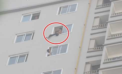 | Nam thanh niên ngáo đá ngồi vắt vẻo trên cửa sổ tầng 21 chung cư |