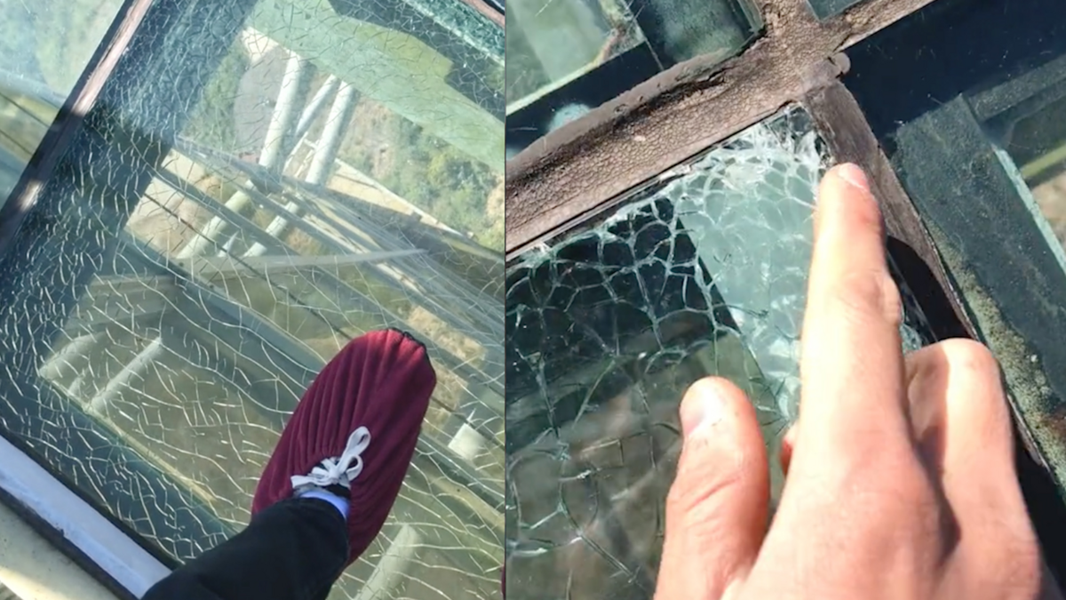 Hình ảnh cầu kính Rồng Mây với hiệu ứng nứt, vỡ gây xôn xao dư luận.