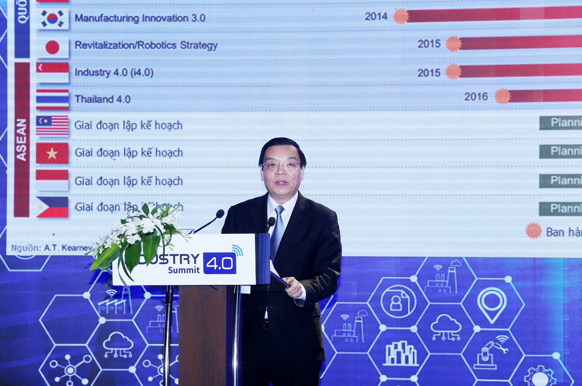 Bộ trưởng Bộ KH&CN Chu Ngọc Anh trình bày tham luận: Đánh giá năng lực tiếp cận CMCN 4.0 của Việt Nam và đề xuất các cơ chế, chính sách