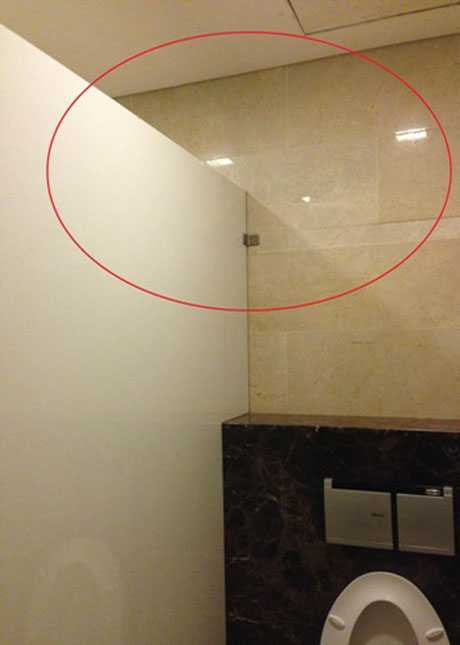 | Phía trên phòng vệ sinh thông thoáng rất dễ câu trộm đồ |