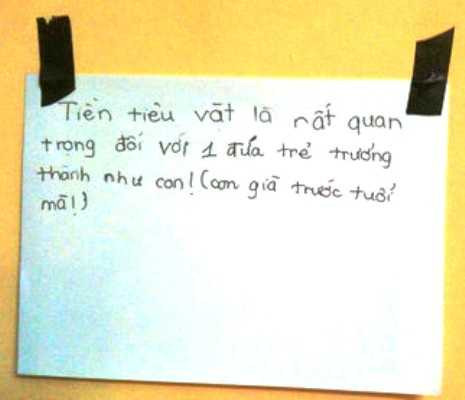“Tiền tiêu vặt là rất quan trọng với một đứa trẻ trưởng thành như con! (Con già trước tuổi mà). Con hứa sẽ quản lý tiền thật tốt”, con gái chị Mai viết.