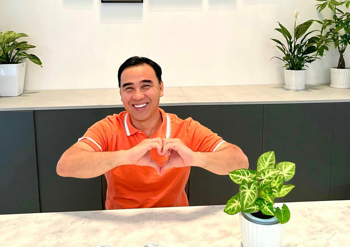 "Đi quay suốt nhưng bận gì thì bận, mấy ngày quan trọng là phải sến sẩm tí cho bà xã vui. Năm nay Linh chọn bánh kem lạnh để nói thay lời yêu thương dành cho vợ do có miếng chocolate hình trái tim với câu I love you bên trong để vợ Linh sẽ bất ngờ khi mở ra ăn nè", Quyền Linh đăng trên trang cá nhân.