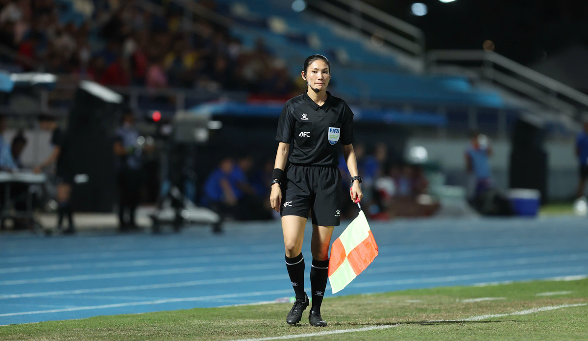 Trọng tài Phutsavan Chanthavong mắc sai lầm trong trận chung kết bóng đá nữ Sea Games 33. (Ảnh: Bongdaplus)