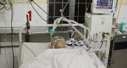 Trung úy Vũ Thế Thắng đang được điều trị tích cực tại bệnh viện. Ảnh: M. Lý |