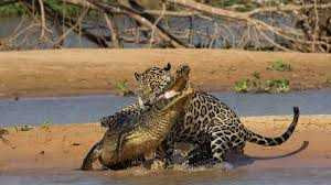 Tấn công hụt, báo đốm bị cá sấu quăng xuống sông thê thảm