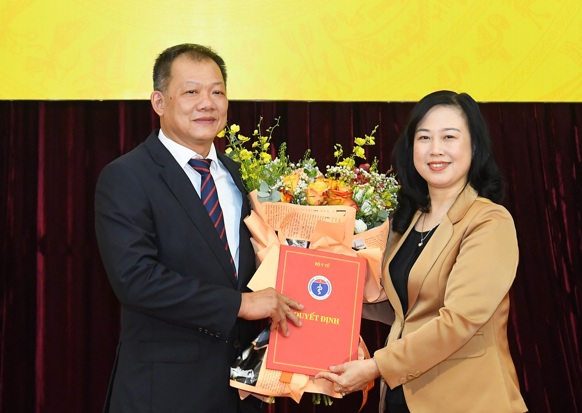 Bộ trưởng Y tế Đào Hồng Lan trao quyết định bổ nhiệm Giám đốc Bệnh viện Hữu Nghị Việt Đức cho TS.BS Dương Đức Hùng. (Ảnh: Mạnh Quân)