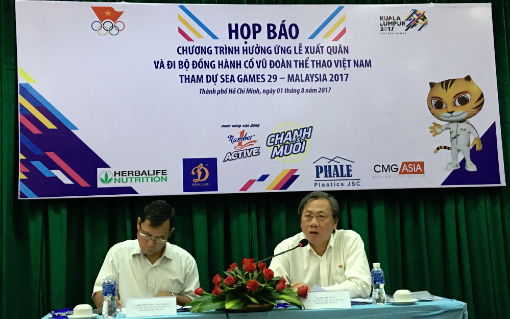 "Chương trình hưởng ứng lễ xuất quân và đi bộ đồng hành cổ vũ đoàn thể thao Việt Nam tham dự SEA Games 29 - Malaysia 2017" do Uỷ ban Olympic Việt Nam phối hợp với Sở Văn hoá và Thể thao TP.HCM tổ chức, nhãn hàng nước uống vận động Number 1 Active Chanh muối - Tập đoàn Tân Hiệp Phát tài trợ sẽ diễn ra vào sáng sớm ngày 6/8/2017 tại phố đi bộ Nguyễn Huệ, Quận 1 với sự tham dự của hơn 5.000 người.