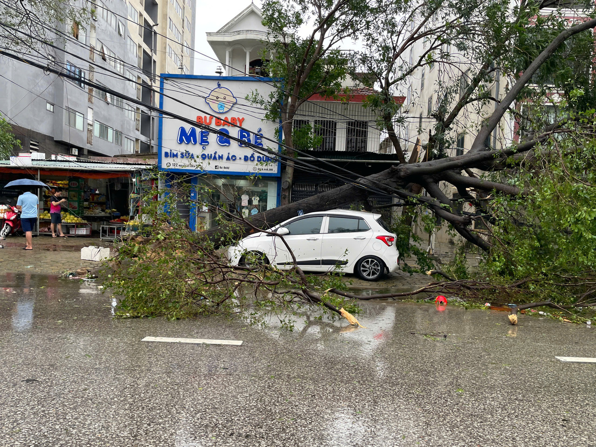 Theo ghi nhận của PV VTC News, sau khi bão số 5 càn quét, nhiều phường thuộc TP Vinh cũ (tỉnh Nghệ An) rơi vào tình cảnh tan hoang với hình ảnh cây xanh bật gốc la liệt trên các tuyến phố.