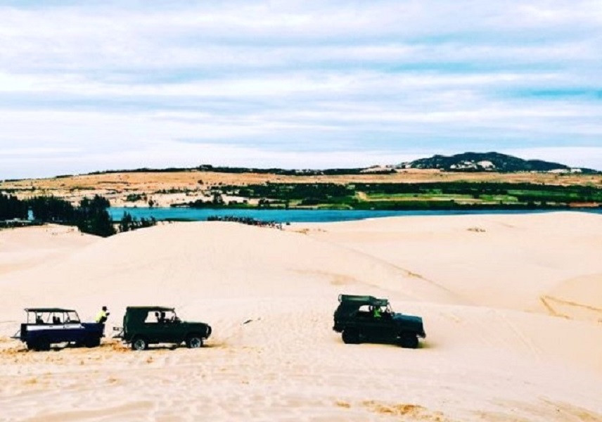 Một dịch vụ du lịch mới có những năm gần đây được nhiều du khách yêu thích khi đến Bàu Trắng là đi xe Jeep