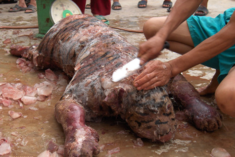 Ông chủ tên M. cười tít mắt: “Chú mày hỏi ngủ bỏ xừ. Con hổ này đã là cái gì. Đến cái cây to vài người ôm, dài cả chục mét còn khênh về được, nói gì con hổ này. Đường biên rộng mênh mông, ai mà trông cho hết được. Riêng vận chuyển bên Lào với Thái Lan thì vô tư, chở cả xe tải cũng thoải mái, nhưng về Việt Nam thì chia ra từng con, thuê người Mông họ vác cho. Cách đó là an toàn ít tốn kém nhất. Còn muốn nhanh và tốn chút thì dấm dúi thông quan. Cái con hổ chết cứng này, thì còn bảo tồn với bảo tàng gì nữa. Hổ nuôi, không có người tiêu thụ, thì ai họ nuôi làm gì. Trước, bọn anh còn nhập hổ từ Ấn Độ, Bangladesh, Srilanka, Nga… về cơ. Giờ hổ ở đấy hết sạch rồi, chỉ còn hổ nuôi ở Lào và Thái Lan là nhiều như lợn. Con này hổ rừng, hàng đắt tiền, nên vận chuyển cũng chắc ăn mới dám mang về đấy”.
