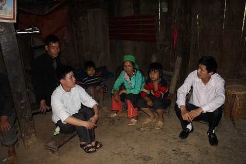 | Nhận được tin anh Vừ Già Pó còn sống, cán bộ xã Khâu Vai thường xuyên đến thăm hỏi, động viên gia đình chị Lía. |