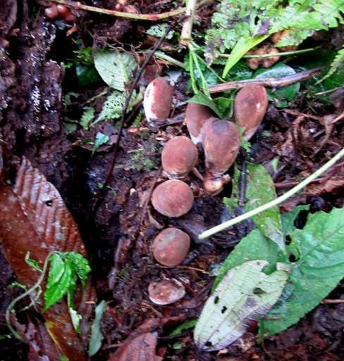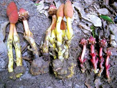 Những củ nấm non màu đỏ tươi, trông không khác gì “dái mít” mọc ngược, trồi lên khỏi mặt đất thành cụm. Lúc chúng mới nhú, hình thù chả khác gì của quý đàn ông.