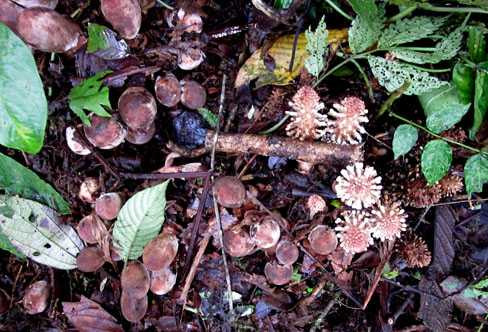 Ở khu rừng rêu bốc bủa vây ấy, những củ nấm kỳ quái mọc tua tủa, đỏ như quả gấc chín, nhìn rất rõ. Vợ Min Phà Sinh cũng dặn rõ chúng tôi, rằng không tiết lộ vị trí có nhiều loài nấm hình của quý.