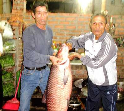 Con trắm đen nặng hơn 30 kg câu được tại hồ Côn Sơn.
