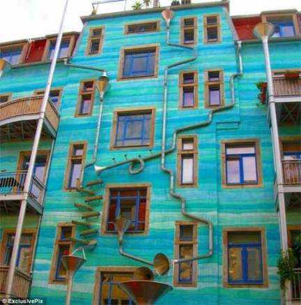 Ngôi nhà hát tọa lạc ở Neustadt Kunsthofpassage, Dresden - Đức, là một phần của dự án nghệ thuật. Mỗi khi trời mưa, toàn bộ tòa nhà trở thành một công cụ phát nhạc.