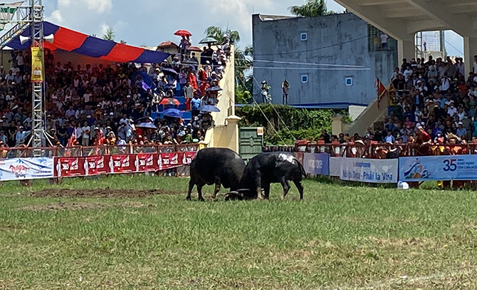"Ông trâu" 03 nặng kỷ lục 1,3 tấn tại Lễ hội chọi trâu Đồ Sơn đã không phụ sự kỳ vọng của khán giả khi chiến thắng đối phương và tiến vào chung kết.