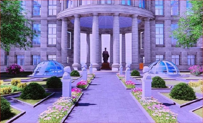 Phối cảnh vị trí đặt tượng vua Lý Thái Tông và tượng các cố Chánh án TAND Tối cao trong khuôn viên trụ sở mới của TAND Tối cao tại số 43 Hai Bà Trưng, Hà Nội.