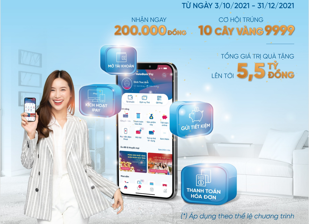 Đặc biệt, khách hàng khi đăng ký mở tài khoản mới trên VietinBank iPay còn được nhận mã số dự thưởng với cơ cấu giải thưởng vô cùng giá trị và hấp dẫn như: 10 cây vàng 9999; máy tính xách tay Microsoft Surface Pro X SQ1… Tổng trị giá quà tặng và giải thưởng của Chương trình lên tới 5,5 tỷ đồng.