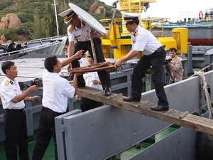 Trưa 23/1, tàu HQ 641 đã đưa Đoàn công tác Vùng 4 Hải quân ra đến đảo Phú Quý (Bình Thuận) mang theo hàng hóa, thực phẩm Tết để quân và dân trên đảo chuẩn bị đón Tết Tân Mão 2011.