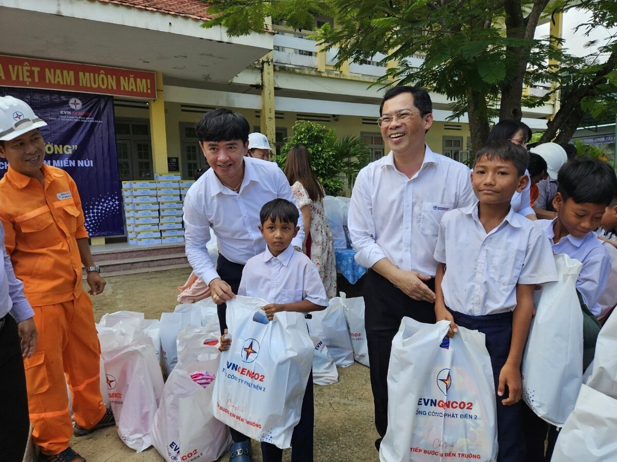 Tổng công ty Phát điện 2 phối hợp với Công ty Cổ phần Thủy điện Sông Ba Hạ trao tặng quà cho trường Tiểu học và Trung học cơ sở Suối Trai.