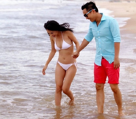 Minh Hằng khoe cơ thể gợi cảm trong bộ bikini màu xanh ngọc trong phim 'Vừa đi vừa khóc'.