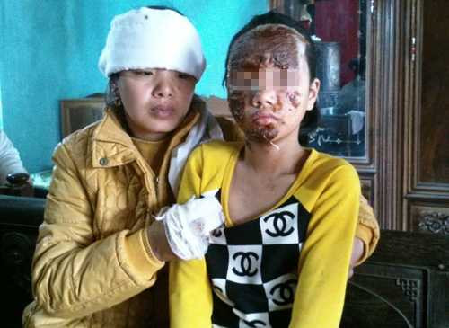 | Chị Đỗ Thị Lệ và con gái bị thương trong vụ nổ chiếc đài Cassette là quà tặng sinh nhật |