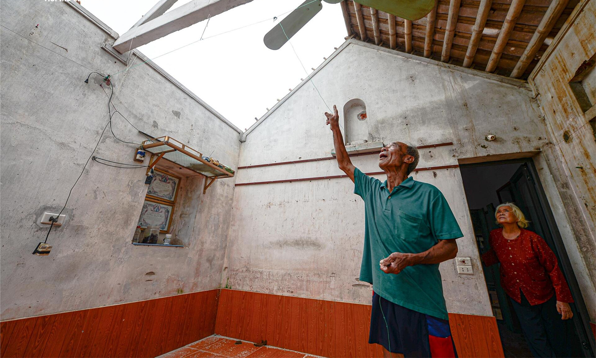 Bước vào căn phòng giờ không còn trần, ba bức tường đổ sập, gạch đá chất chồng, ông chỉ tay vào từng vị trí giường: "Tôi nằm trong cùng, tiếp đến là giường mẹ, rồi giường cha. Mỗi giường chỉ cách nhau vài bước chân. Lúc đó gió rít, mưa xối xả, cây cối đổ ầm ầm. Tôi chỉ còn biết gào lên: Nhà đổ rồi! Cha mẹ tôi mất rồi! Cứu chúng tôi với!".