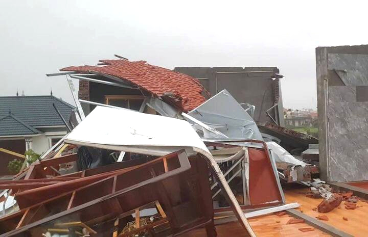 Một ngôi nhà ở Ninh Bình đổ sập sau trận lốc xoáy.