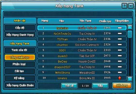 Đặc biệt, tại máy chủ Phượng Hoàng, tanksieu còn được biết đến như một nhân vật siêu VIP với bộ trang bị khủng làm các tanker “choáng váng”: Tank Chiến Thần đời IV +10, 27 sao, một set thẻ kỹ năng vàng + 12, một set trang bị Thử thách Thần thoại + 8 và 9 đã tinh luyện thuộc tính lên dòng tím và vàng. Tất cả những thuộc tính và chỉ số của trang bị đều thuộc tầm đẳng cấp và có sức mạnh đáng gờm mà bất kỳ cao thủ nào cũng phải nể phục. Ngoài ra, trong bảng xếp hạng Chiến Lực, tanksieu cũng đứng vị trí đầu bảng và là một trong những nhân vật góp phần làm nên tên tuổi và vị thế của server Phượng Hoàng.