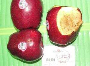 Táo mua hôm trước, hôm sau bổ thấy bị thối bên trong, nhìn ngoài vẫn đỏ, cứng quả.