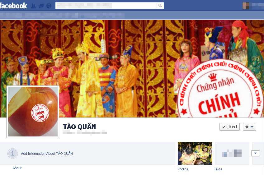 | Trang trên Facebook với hình ảnh "Táo Chính Chủ". |