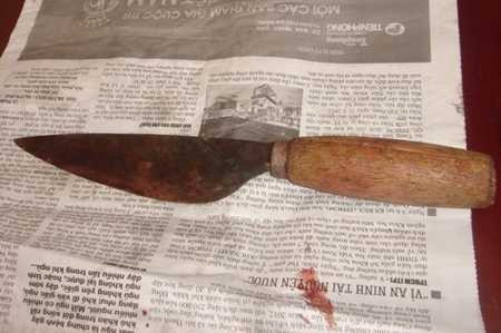 Sau khi gây án, 2 đối tượng chạy ra phía sau nhà chị Minh, Mạnh vứt con dao xuống ao rồi cùng Thái bỏ trốn.
