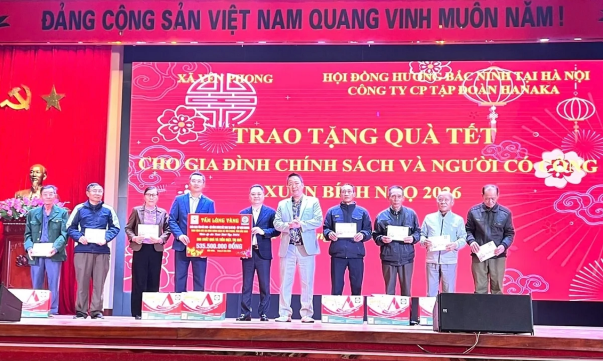 Nhân dịp Tết Nguyên đán Xuân Bính Ngọ 2026, Tập đoàn Hanaka phối hợp với Hội đồng hương Bắc Ninh tại Hà Nội, UBND - Ủy ban MTTQ các địa phương tổ chức chương trình trao tặng quà Tết cho các gia đình chính sách, người có công với cách mạng và các hộ có hoàn cảnh khó khăn trên địa bàn tỉnh Bắc Ninh, với tổng trị giá gần 3 tỷ đồng.