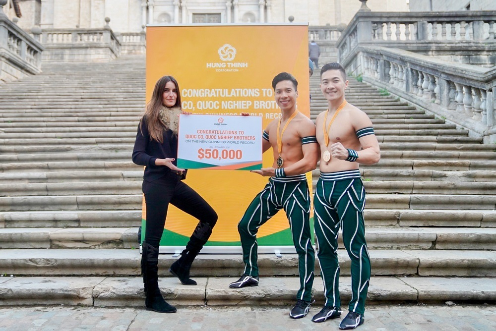 Đại diện Tập đoàn Hưng Thịnh chia sẻ: “Chúng tôi gửi lời chúc mừng và cảm ơn đến hai anh em nghệ sĩ xiếc Quốc Cơ, Quốc Nghiệp vì đã mang đến màn trình diễn tuyệt vời. Thật tự hào khi Việt Nam có thêm một điểm son trên trang Kỷ lục Guinness thế giới.
