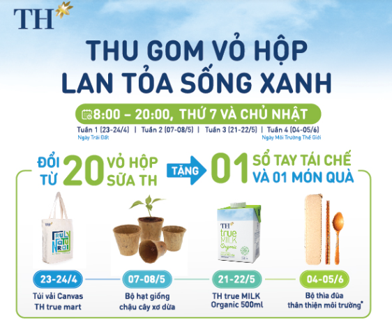 Với tôn chỉ hoạt động “Hãy trân quý Mẹ Thiên nhiên, người sẽ cho mình tất thảy” cùng tầm nhìn trở thành một doanh nghiệp "thân thiện với môi trường" và phát triển bền vững, Tập đoàn TH (sở hữu thương hiệu TH true MILK) không chỉ tiên phong làm sữa tươi sạch và nông nghiệp hữu cơ, nông nghiệp công nghệ cao, mà hiện đã trở thành một doanh nghiệp dẫn dắt trong việc tìm kiếm, ứng dụng những giải pháp vật dụng gắn với tiêu dùng thân thiện với môi trường, sử dụng nguyên liệu sinh học có thể tái tạo.