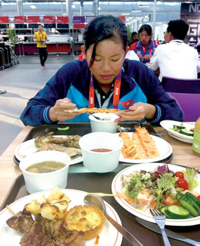 Một bữa ăn của vận động viên bơi lội Ánh Viên với rất nhiều thực phẩm giàu protein. Ảnh Internet.