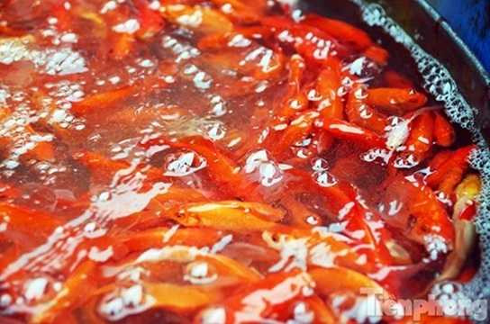 Những ngày này, tại chợ cá ông Công, ông Táo ở Yên Sở (Hoàng Mai, Hà Nội) tấp nập kẻ mua, người bán để chuẩn bị cho ngày Tết.