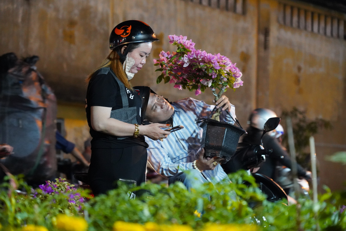 Ghé đến chợ hoa "trên bến dưới thuyền" ai cũng khệ nệ, tay xách nách mang, nào là hoa cúc, hoa giấy... càng làm cho không khí rộn ràng, tấp nập bất dù đã về đêm.