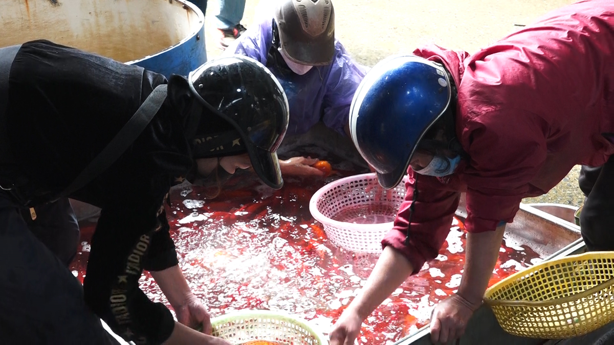 Trước ngày ông Công, ông Táo (23 tháng Chạp), chợ cá Yên Sở tại Hà Nội sôi động hơn nhờ tiểu thương và khách tìm tới mua cá chép đỏ.