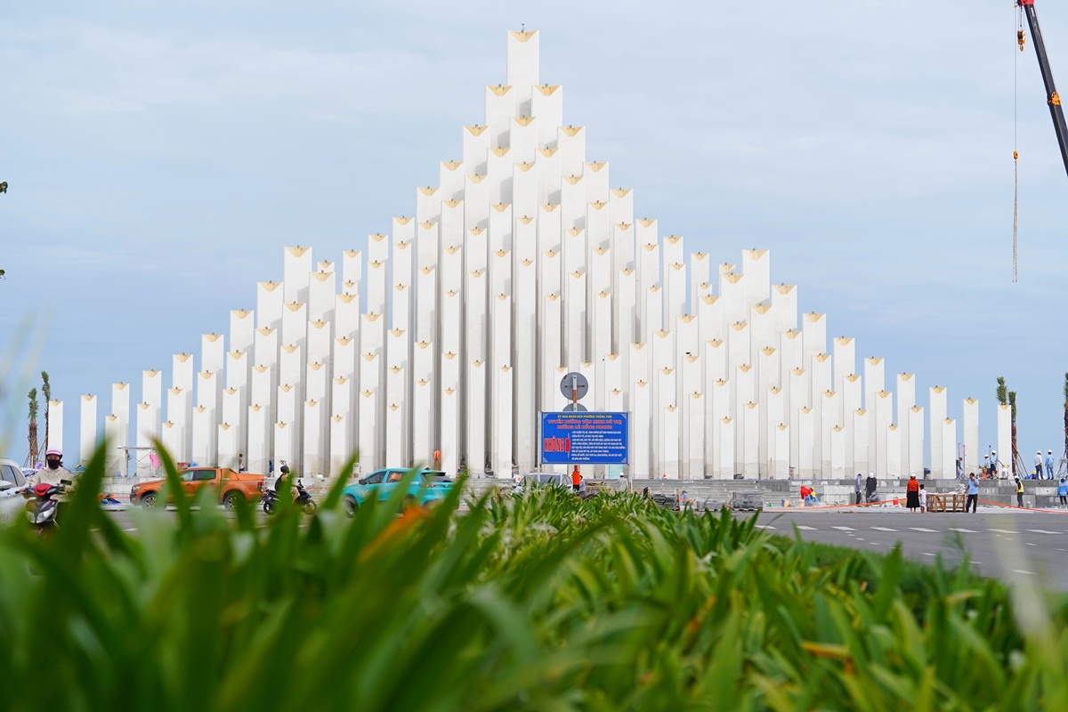 Riêng các hạng mục như mái nhà hình con sò biển, chòi gác cứu hộ, vỉa hè, công viên, hệ thống chiếu sáng và cầu đi bộ đã hoàn tất, sẵn sàng chờ ngày khánh thành để đón người dân và du khách.