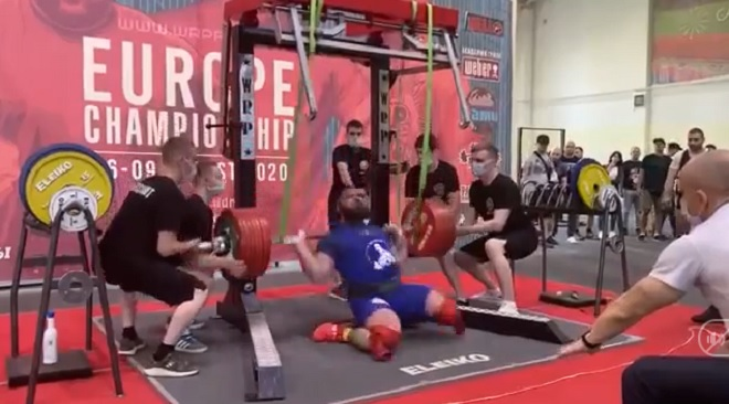 Sedykh, VĐV người Nga, muốn thử thách bản thân với màn squat ở mức 400 kg. Chưa thực hiện được thành công thì anh đã khuỵu xuống sàn đấu.